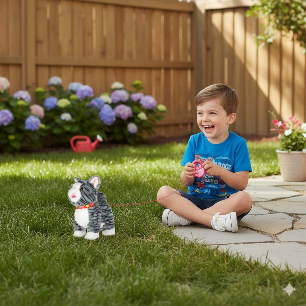 The interactive kitten is easy to guide with the leash controller; press the button and it moves forward to cheerful melodies. It responds to petting with meowing and tail and tongue movements, creating a natural feel that helps kids quickly form a bond.