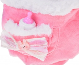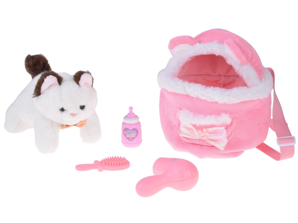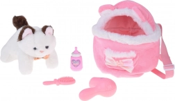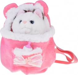 This cuddly plush kitten in a pink backpack is ideal for kids who love pretend pet care. Thanks to the bendable paws, a child can easily sit, lay, or stand the kitten, and the heartbeat effect in its belly adds tenderness and realism to play. The soft fur, embroidered facial details, and a cute bow make it a wonderful companion for cuddling and travel.