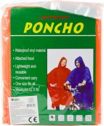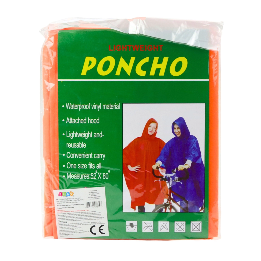 A practical hooded rain poncho made of durable vinyl reliably protects you from rain and wind. It is waterproof, lightweight, and reusable. Thanks to its one-size-fits-most design and generous dimensions, it comfortably fits over clothing or a backpack, and once folded it takes up minimal space in a bag, backpack, or car compartment.