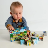 Twelve picture cubes allow you to create 6 different images. Assemble buses, ambulances, or police cars!