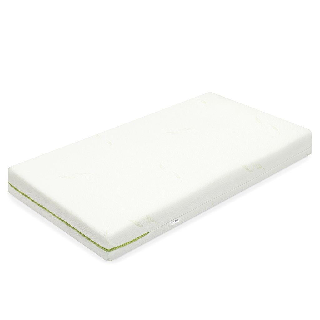 Breathable materials actively regulate moisture and temperature and help prevent mold, dust mites, and bacteria. The mattress is ideal for a baby cot and supports proper body alignment during sleep.