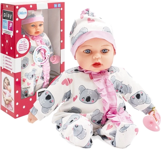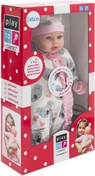 The adorable PlayTo Bibi doll, 46 cm tall, will delight every child with its spoken and sung phrases in 4 languages (Czech, Slovak, Polish, Hungarian). It has a soft body for cuddling, rubber hands, feet, and head for a more realistic look, and includes a pacifier. The outfit can be easily removed and washed. Powered by 3 × 1.5 V (AG13/LR44) batteries, which are included in the package.