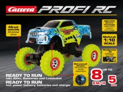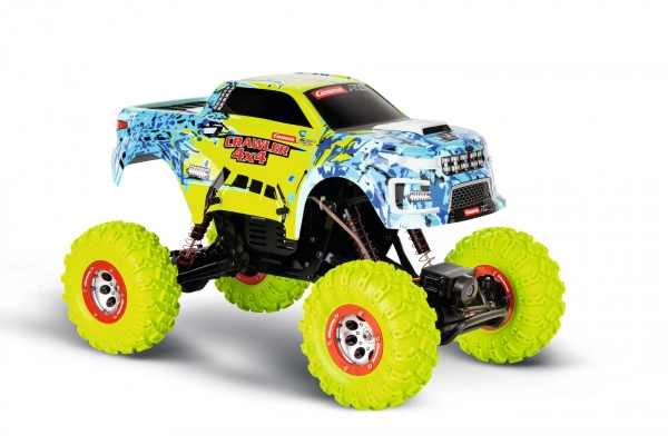 Experience off-road adrenaline with the CARRERA PROFI RC Crawler 4x4 in 1:10 scale. It offers all-wheel drive, digitally proportional control, oil-filled shocks for a smooth ride, and water-resistant design. With speeds up to 8 km/h, large neon green tires with deep tread, and a Ready To Run setup, it guarantees fun for demanding drivers aged 14+.