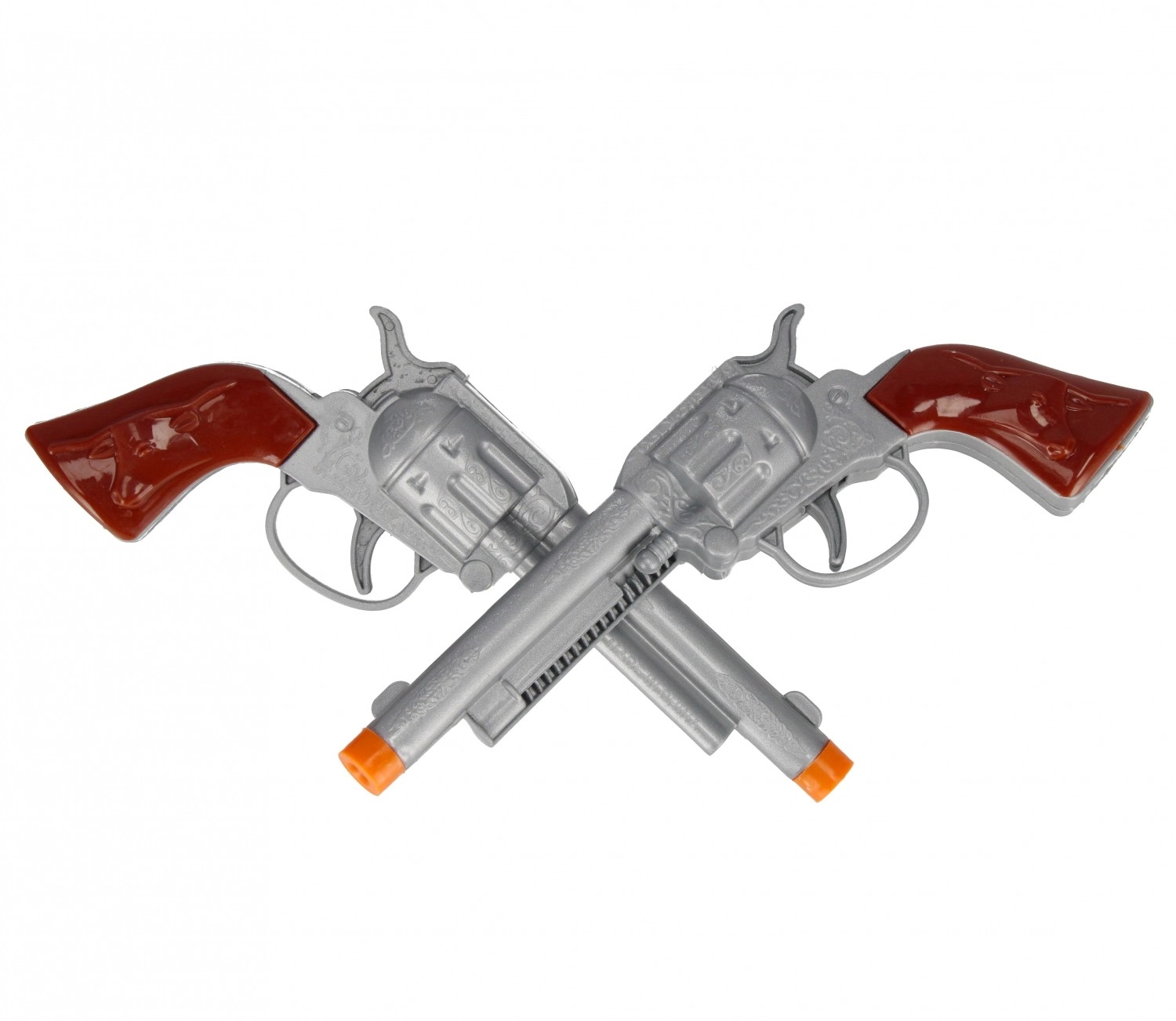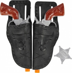 The set includes everything needed for an authentic experience—two pistols, two belt holsters, and a shiny sheriff’s badge. Thanks to lightweight materials, the accessories are easy to handle and comfortable for children to wear.