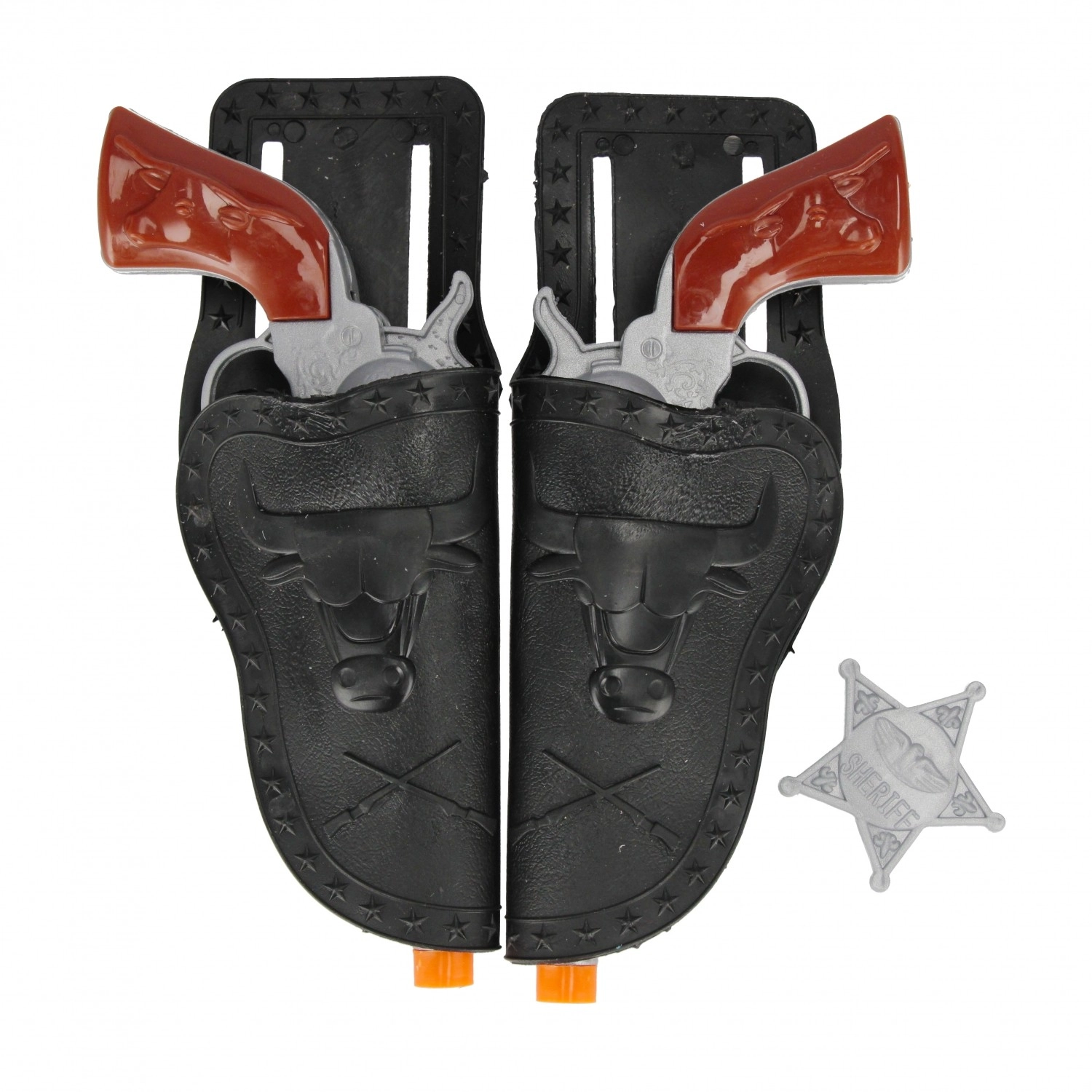 - Complete equipment: 2 pistols, 2 holsters, sheriff’s badge
