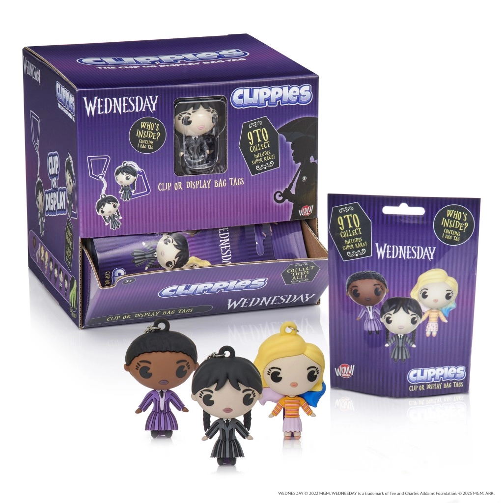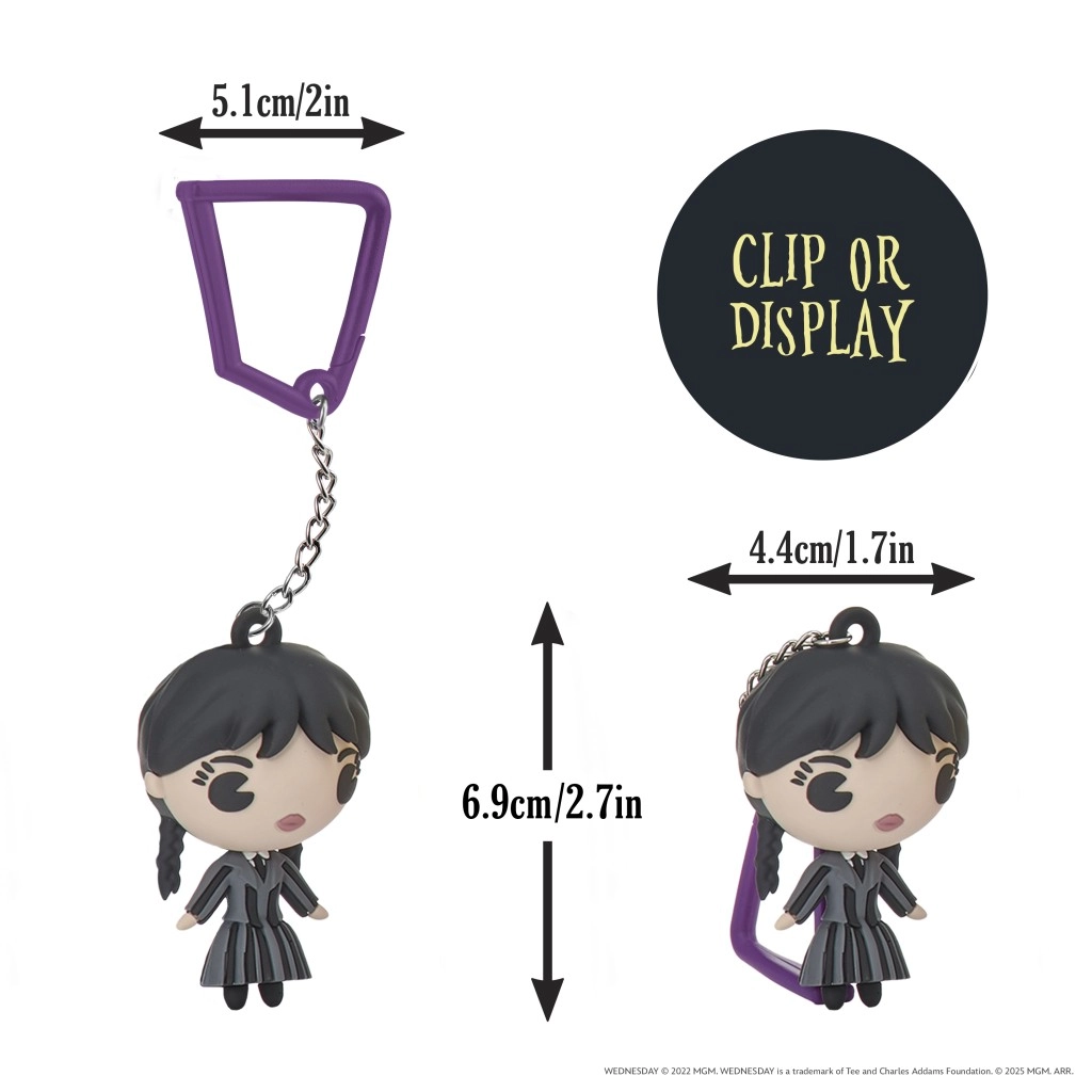 Discover a fun collection of collectible clips inspired by the WEDNESDAY series. Each clip is shaped like a favorite character and is perfect for a backpack, pencil case, or keys. An ideal gift for fans who want to keep their favorite character always at hand.