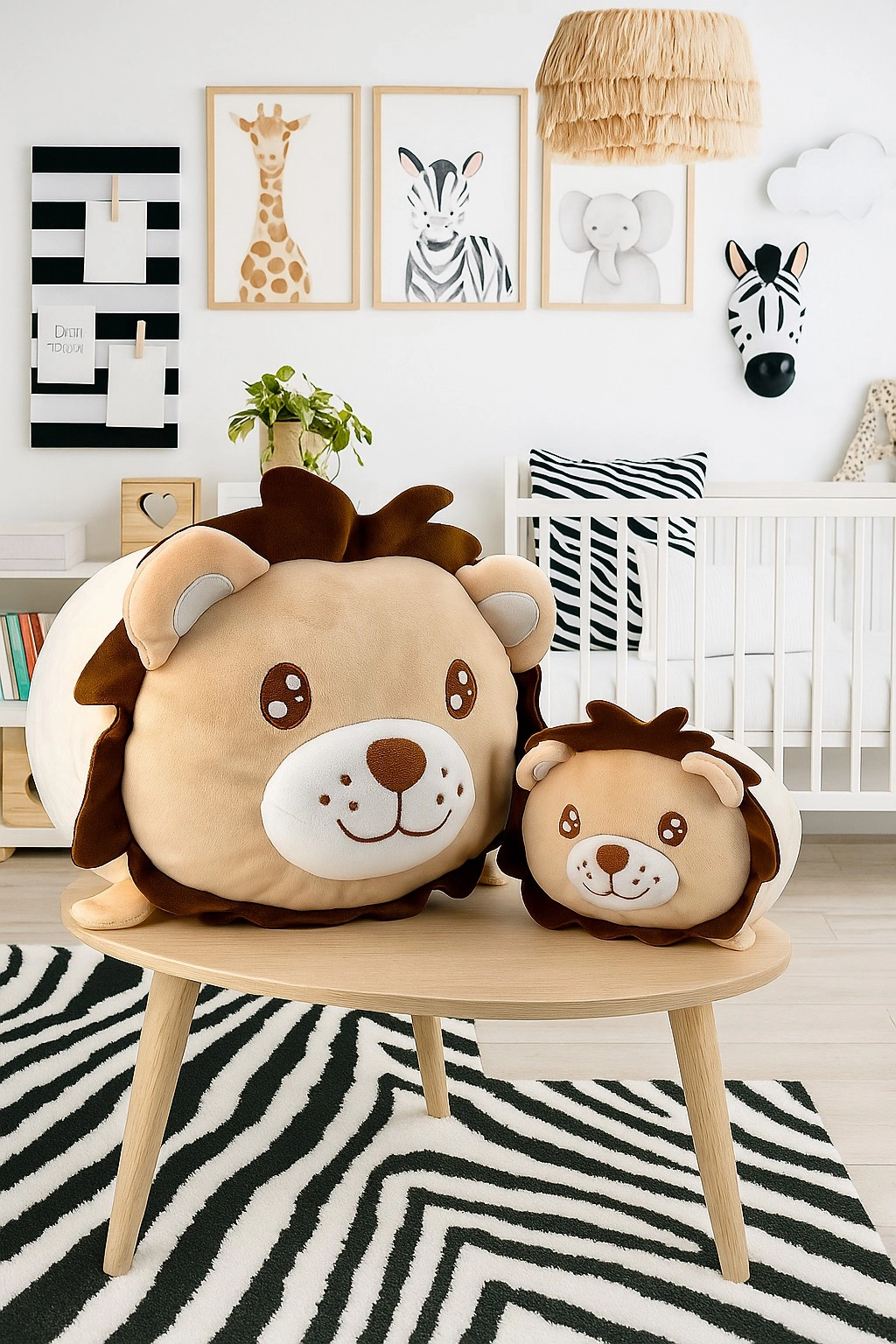 The MAGIC BABY plush lion set brings tenderness, comfort, and safety to every child’s room. The smaller lion (20 cm) is perfect for tiny hands, while the larger lioness (40 cm) serves as a soft pillow for the crib, stroller, or car. Both feature exceptionally soft surface fabric, embroidered details, and a rounded shape that’s lovely to hug.