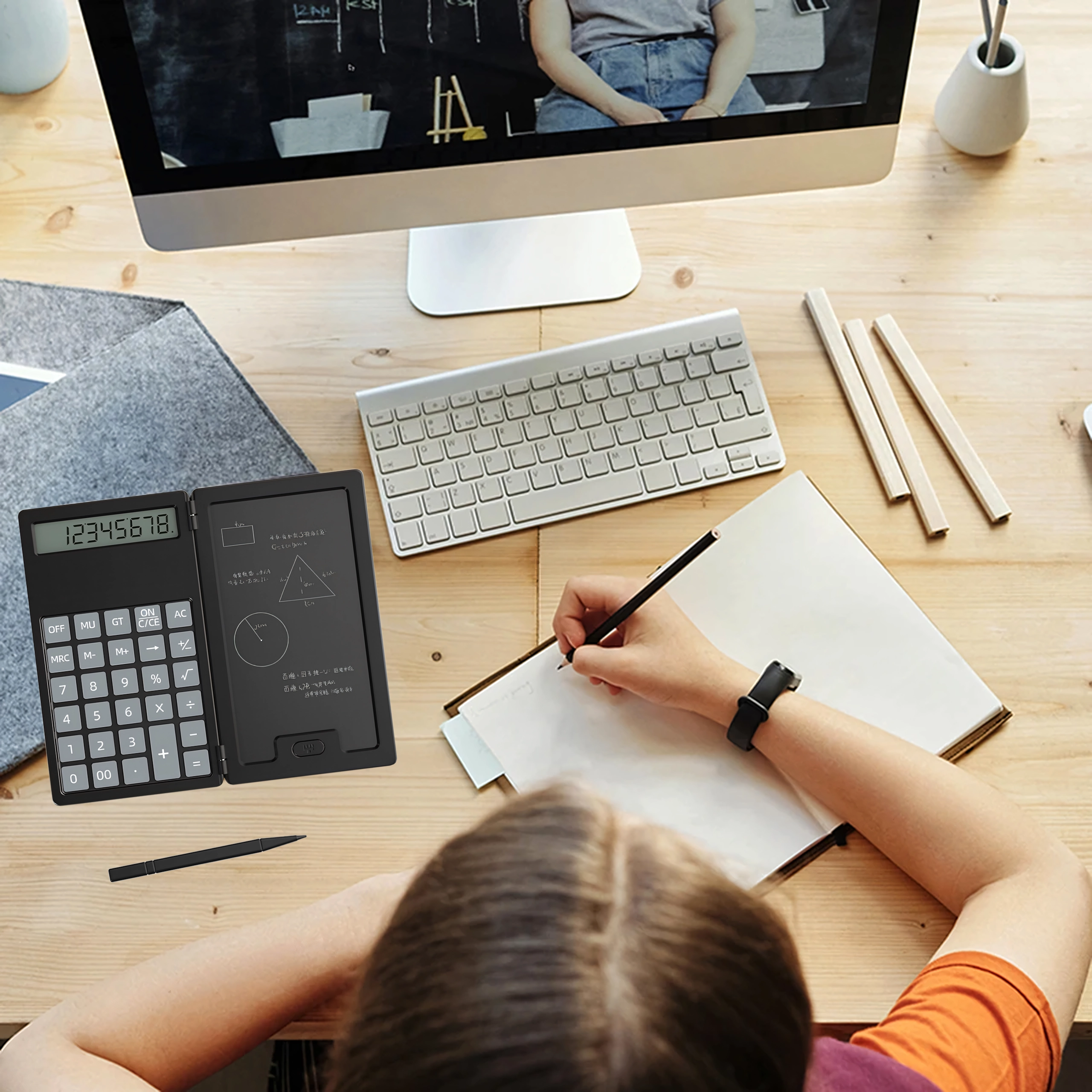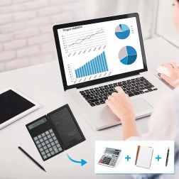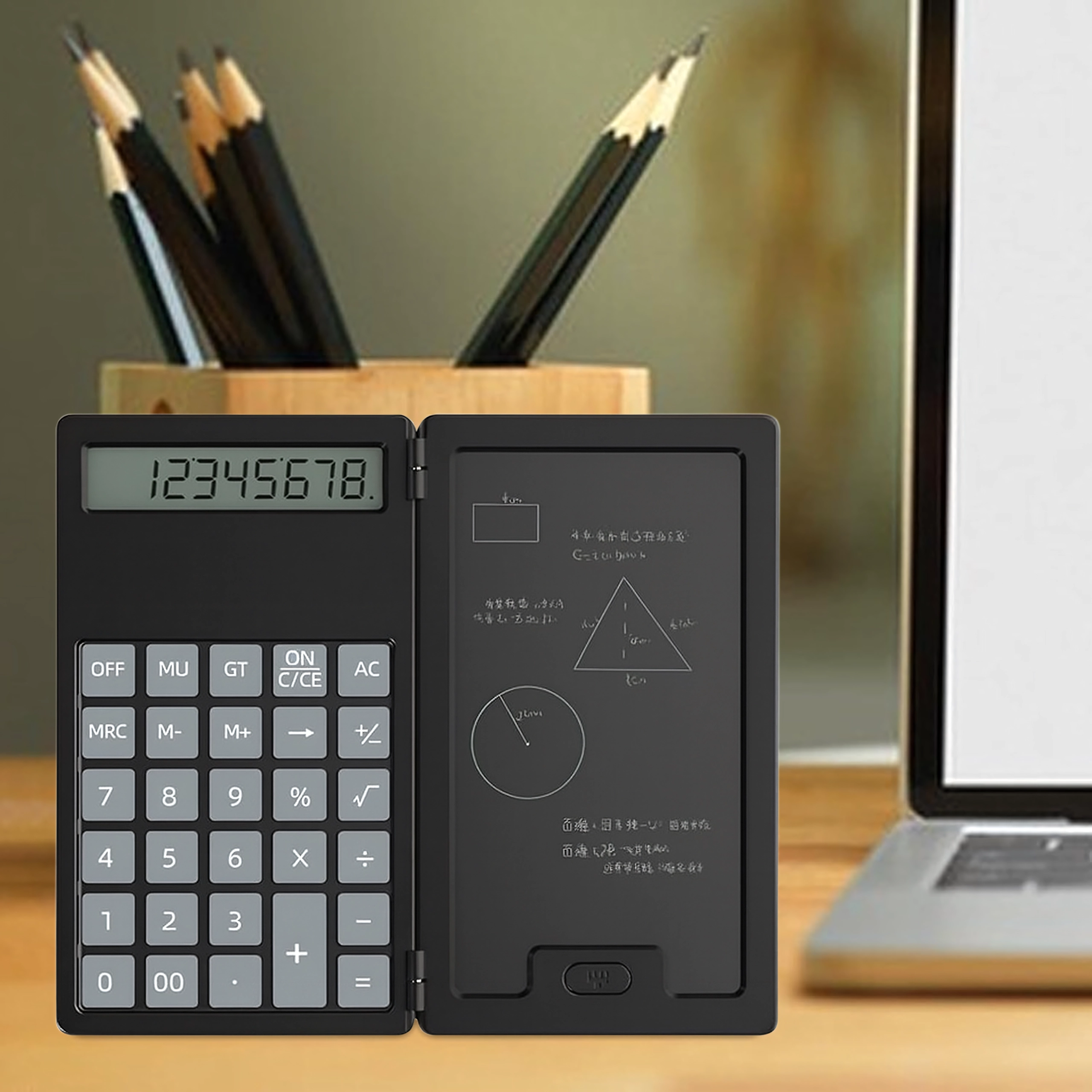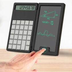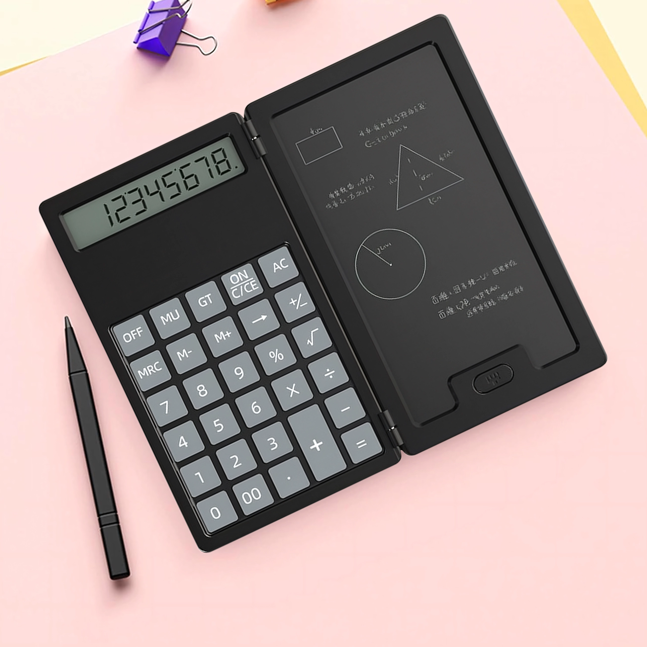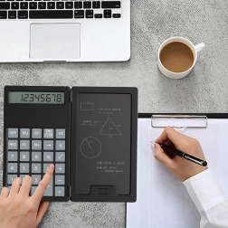 This smart calculator with a foldable body combines classic calculations with a practical LCD note board. Thanks to its light and slim design, it slips easily into a bag or pocket, keeping it at hand for quick calculations and notes.