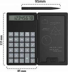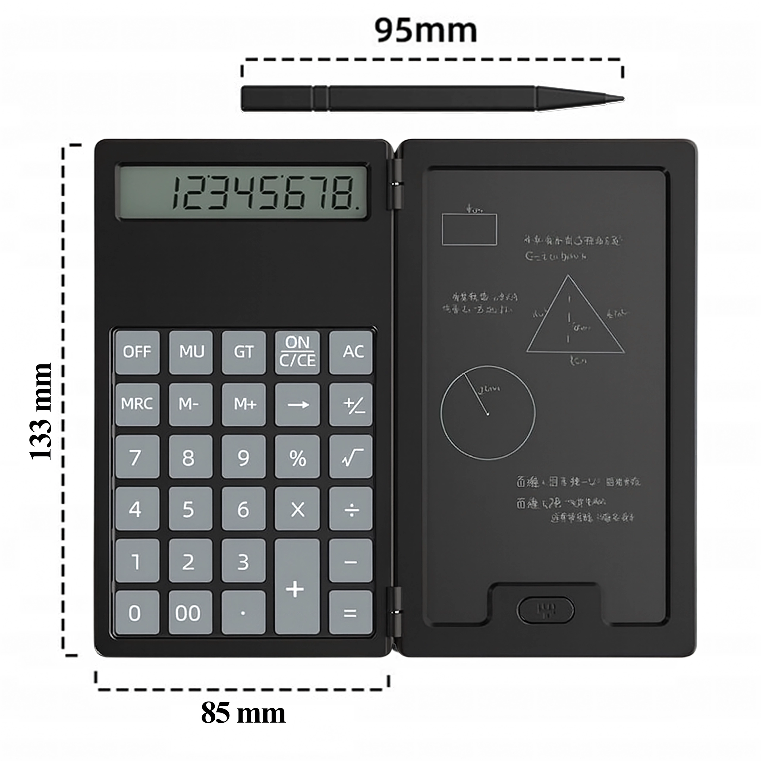 A compact 2-in-1 device combining a scientific calculator and an LCD notepad. Ideal for school, office, and home—calculate, jot down, and save notes without paper, quickly and conveniently in one place.