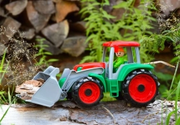 The TRUXX tractor is a durable toy for everyday adventures. The movable front bucket easily loads sand, pebbles, or blocks, while the tilting cab and included figure encourage creative play and develop fine motor skills. The robust yet flexible plastic with no sharp edges is ideal for young children.