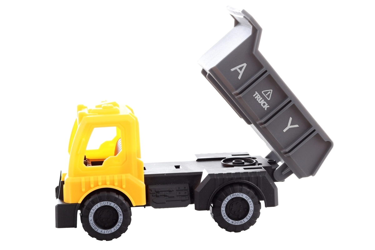 Discover construction-site fun with a set of two plastic work vehicles for kids aged 3+. The vehicles feature a freewheel design, are durable, and perfect for play both indoors and outdoors. The compact packaging measuring 33 × 11 × 8 cm is easy to carry and gift.