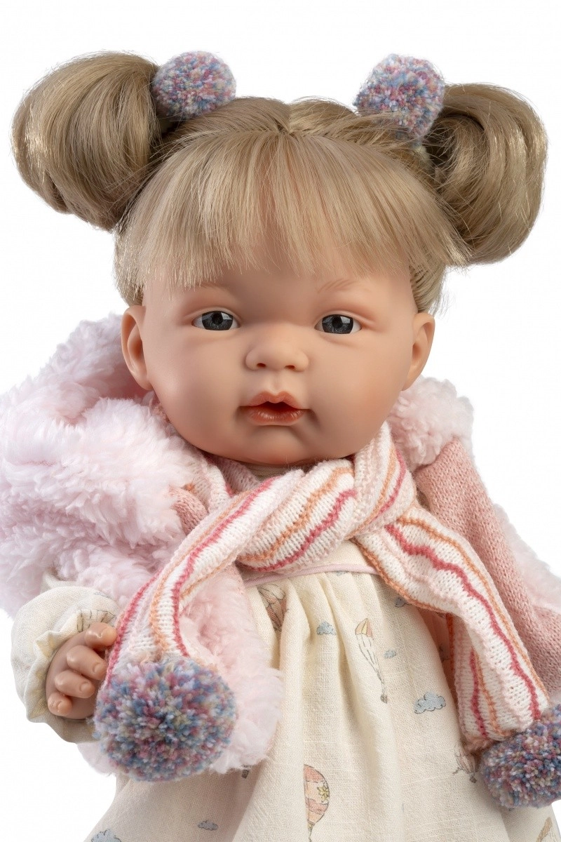 The Joelle doll by LLORENS is crafted with meticulous attention to detail: delicate makeup, realistic eyelashes, expressive eyes, and soft outfits made from organic cotton, wool, and recycled materials. Thanks to the soft body, she’s ideal for cuddling and everyday play.