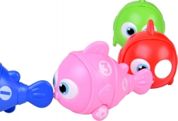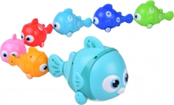 The big fish pulls the attached small fish. All have wheels, so they glide smoothly across the floor for seamless play.