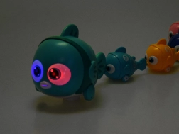 The interactive fish family offers plenty of play options at home and on smooth floors. The battery-powered big fish moves forward when you press its dorsal fin, lights up its colorful eyes, and plays a cheerful melody. The smaller fish have magnets in their mouths and tails, so you can easily connect them into a long train and let them roll on their wheels behind the big fish.