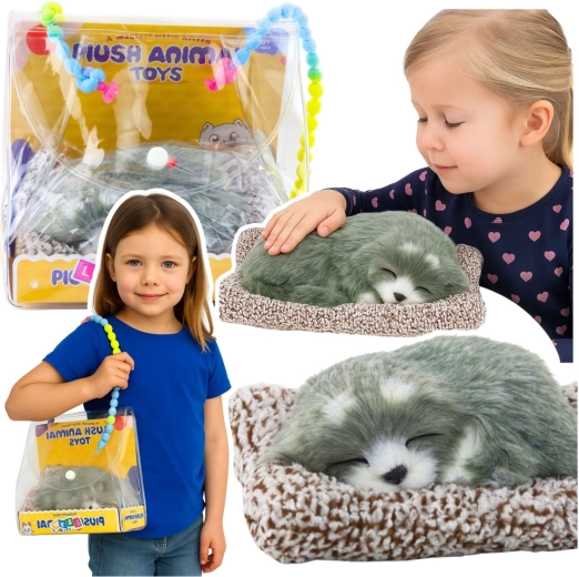 - Realistic look – faithful details of a sleeping dog on a soft bed.