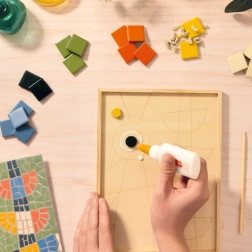 Discover the charm of traditional mosaic in a modern form. The DJECO ATELIER 73 mosaic set brings everything you need to create an original piece of art—from colorful tiles and precise glue application to the final grouting. Thanks to the clear organization of components and quality tools, creating is easy and fun.