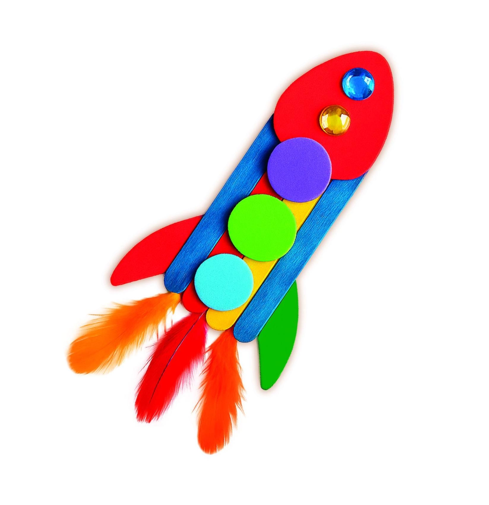Kids can build their own rocket and other themed creations. The mix of shapes and embellishments encourages creative play and step-by-step making.