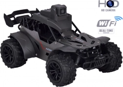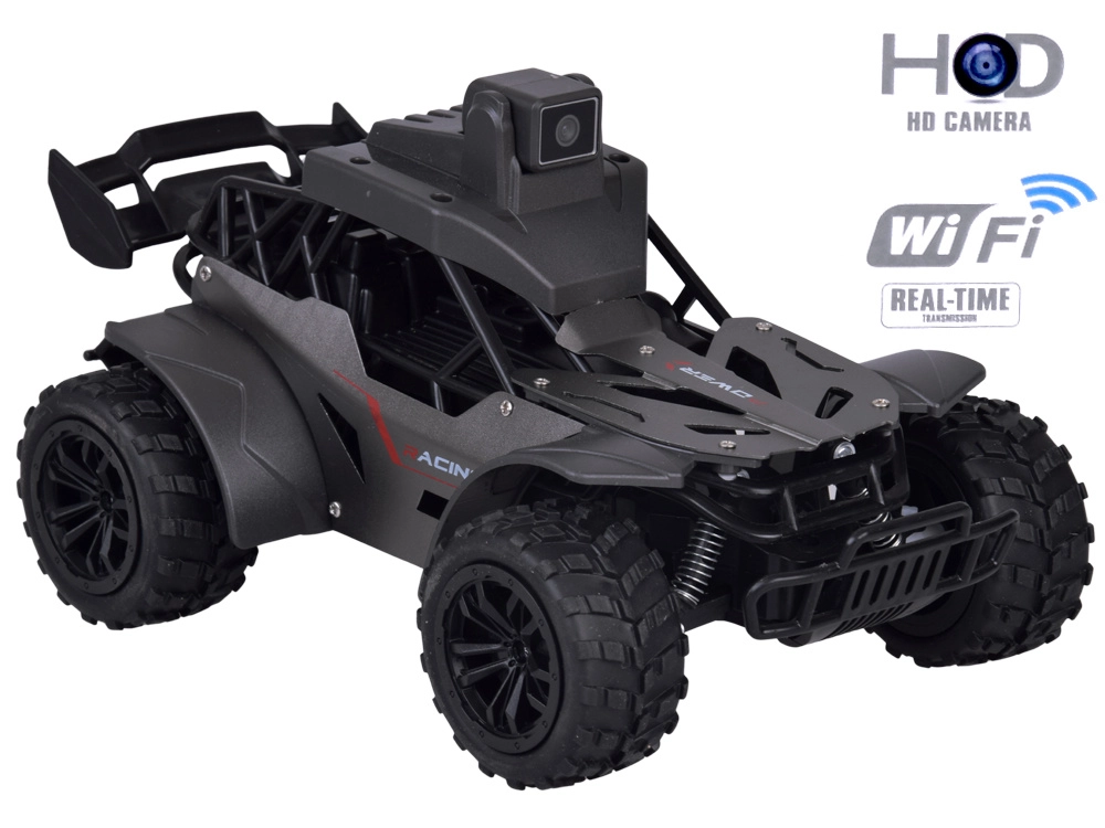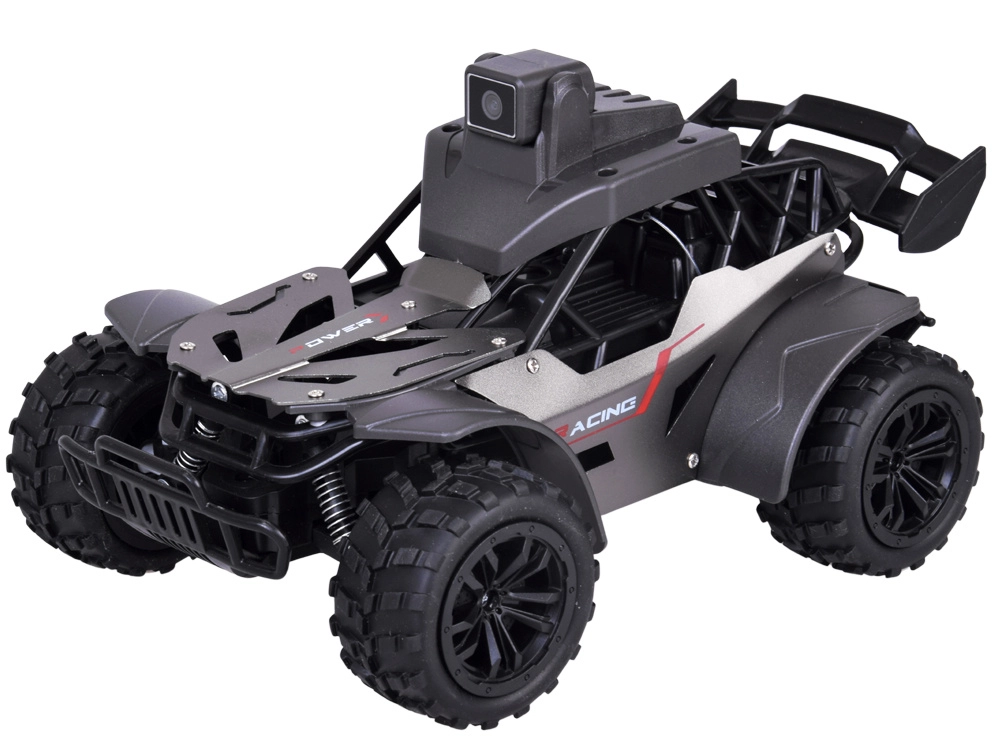 Discover next‑generation fun with this off-road RC car featuring a camera and a live view on the controller’s display and in the mobile app. Thanks to its large rubber tires, spring suspension, and durable lightweight frame, it handles both indoor and outdoor terrain with ease. The built-in camera lets you record video, take photos, and, with two-way voice communication, even exchange messages between the car and the controller.