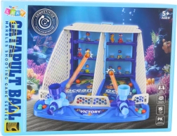 - main board, 2 launchers, 16 marbles, 3 sets of target figures, side and top structural elements, ocean-themed stickers, assembly instructions