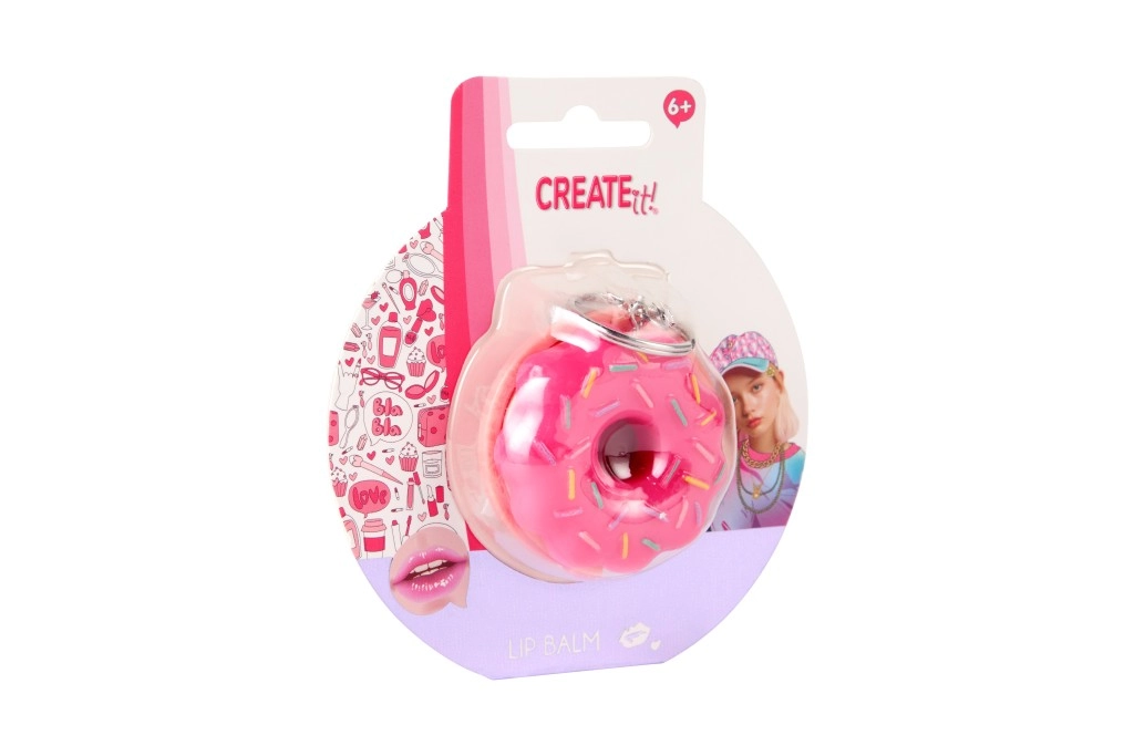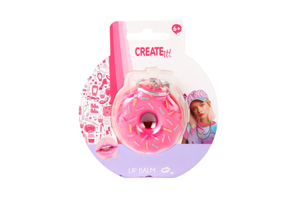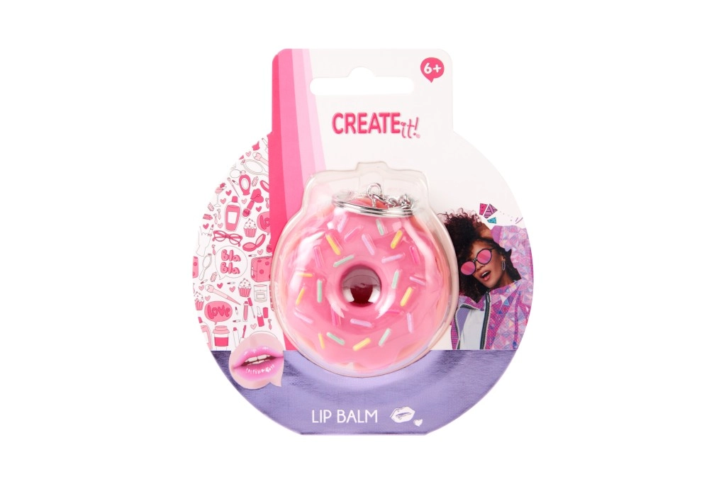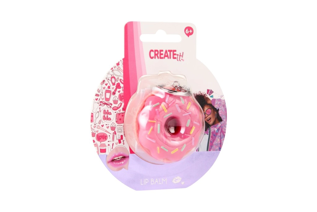 Looking for a fun and practical accessory? The donut-shaped lip balm from CREATE IT! combines a playful design with effective care. The creamy texture applies easily and leaves lips soft and supple. The pink donut with sprinkles will be loved by kids 6+ and fans of stylish little must-haves.