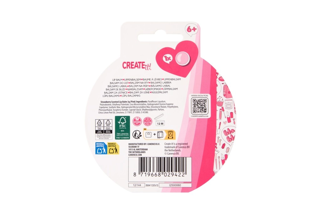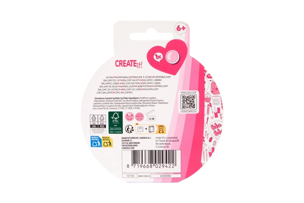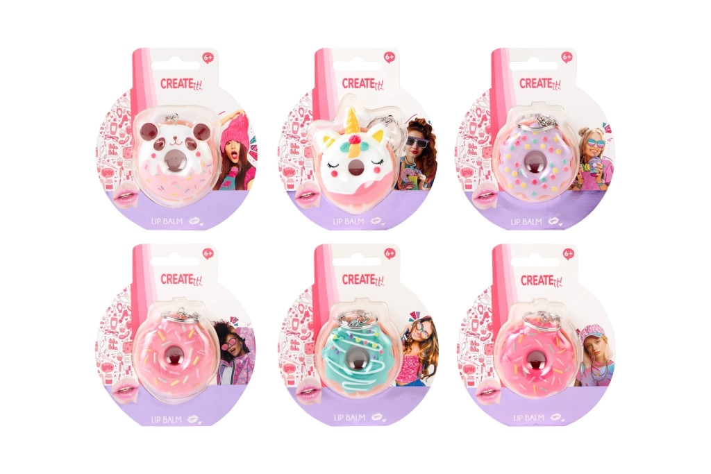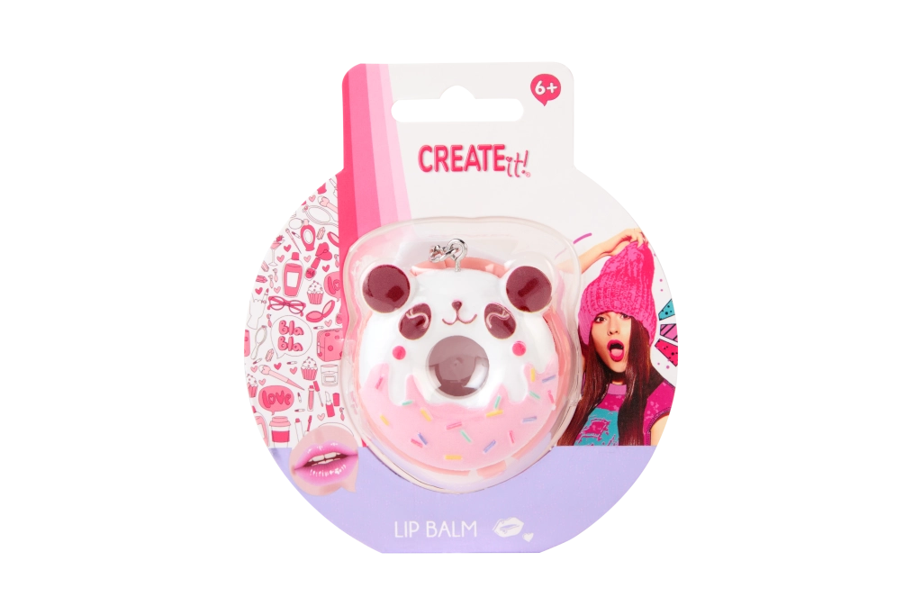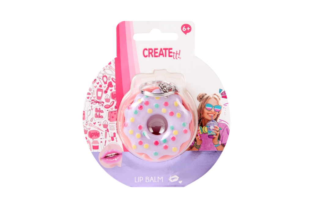 Looking for a fun and practical accessory? The donut-shaped lip balm from CREATE IT! combines a playful design with effective care. The creamy texture applies easily and leaves lips soft and supple. The pink donut with sprinkles will be loved by kids 6+ and fans of stylish little must-haves.