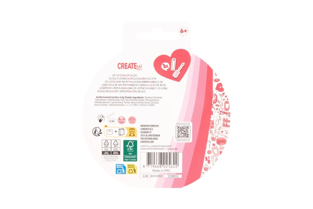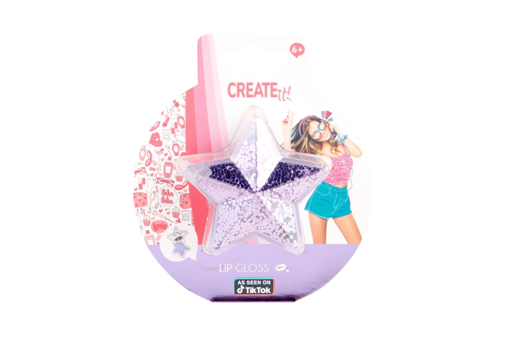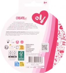 The CREATE it! lip gloss combines care and playful aesthetics in one cute mini compact. Each compact has a transparent cap with floating sparkles that catch the eye at first glance, while the gently scented vanilla formula gives lips a soft shine and pleasant hydration.