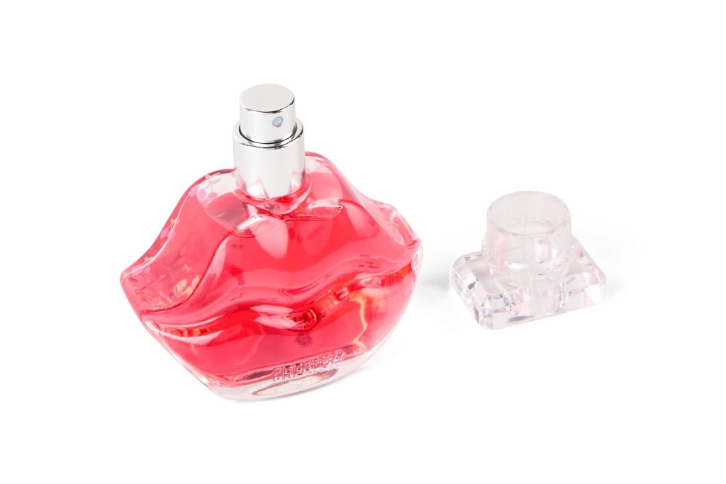 The lip-shaped bottle design makes it a stylish addition to your vanity and an original gift. The practical sprayer ensures even application and a gentle scent on skin and clothing.
