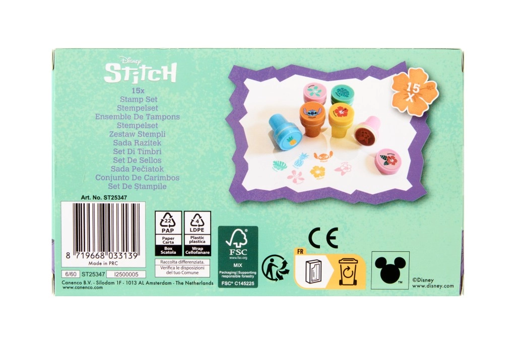 Discover fun crafting with the STITCH stamp set. Kids can easily create original decorations, embellish notebooks, or make cards and gift tags. Thanks to the included colored ink pad, the set is ready to use right away.