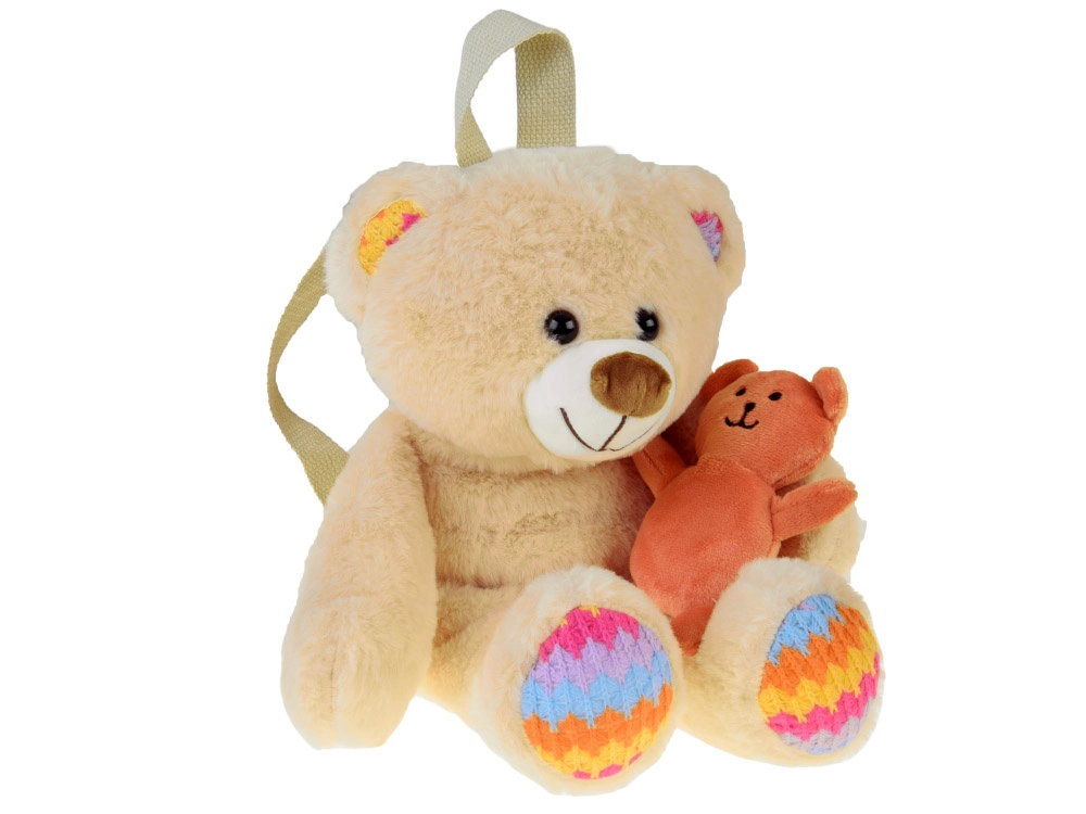 plush children's backpack teddy bear with mini teddy and adjustable straps