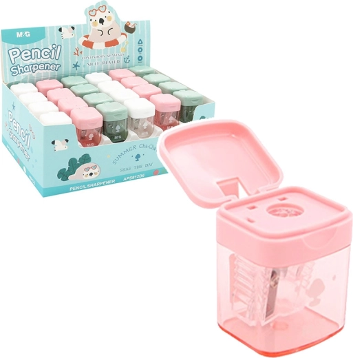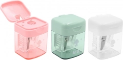 Compact pastel sharpener measuring 27 × 25 × 33 mm for easy sharpening of standard pencils and colored pencils. Offers multiple color variants, and is lightweight and practical for both pencil case and desk. Packed in a box of 48 pcs, price is for 1 pc. Suitable for children aged 3+.