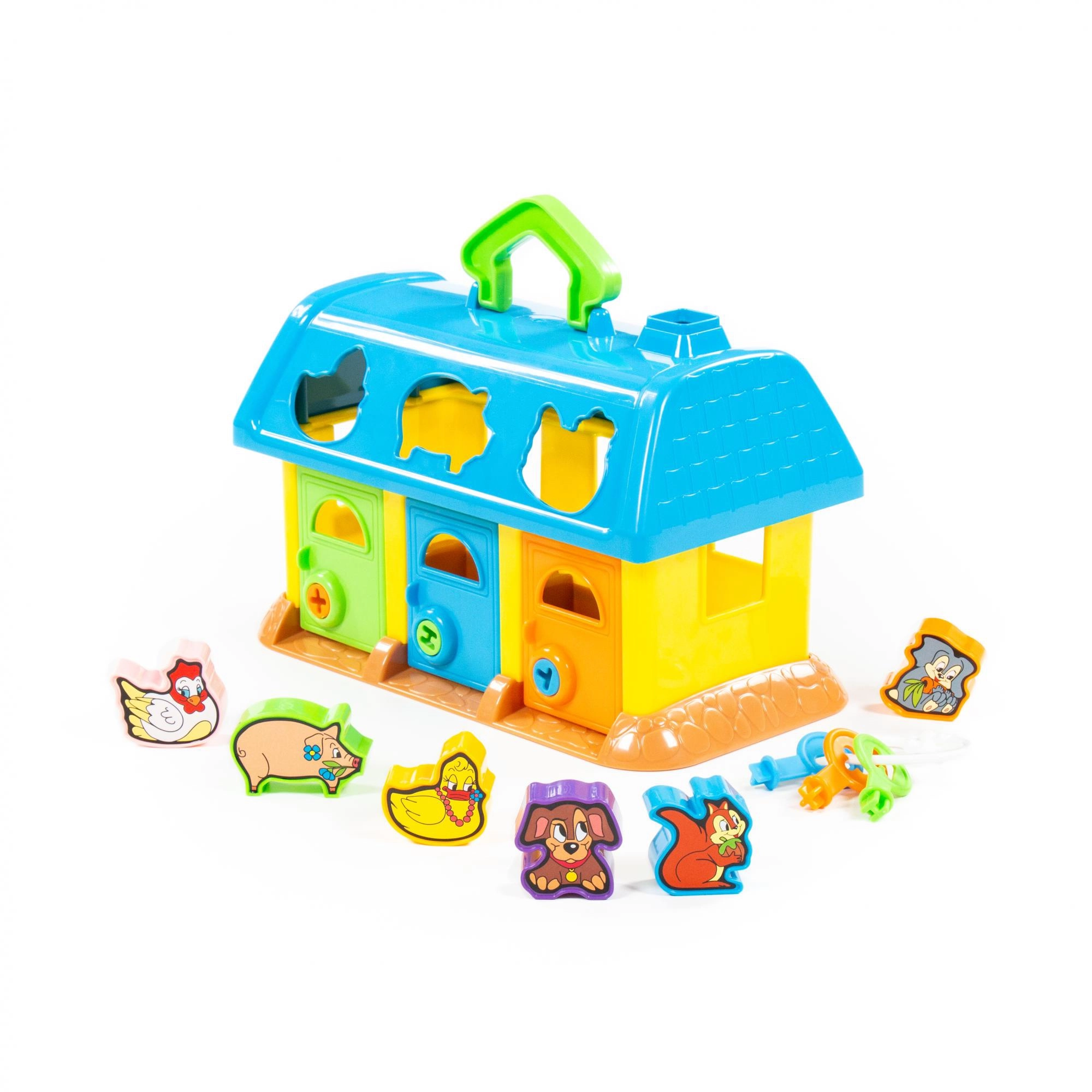 Discover the fun didactic house with animals that combines shape sorting and key play. This colorful plastic toy supports the development of fine motor skills, shape and color recognition, and logical thinking. It includes 6 animal-shaped pieces and keys to open the doors for even more interactive fun.
