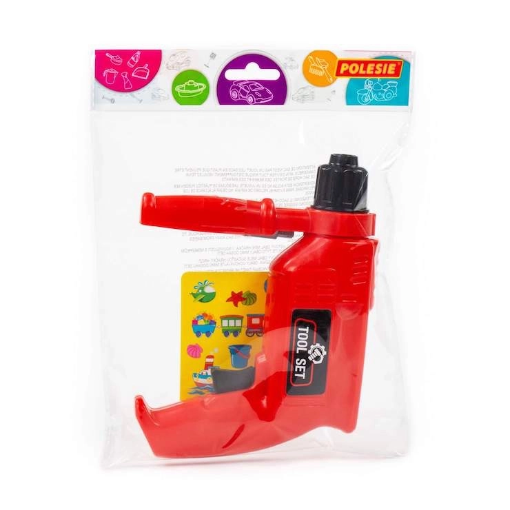 A realistic kids' drill in a bright red color will delight little makers and spark their imagination. Thanks to the true-to-life design and comfortable grip, children will enjoy pretending to do repairs and projects. When the trigger is pressed, the bit starts to rotate, adding authenticity to play and supporting the development of motor skills and creative play.
