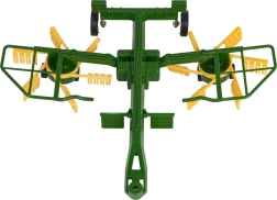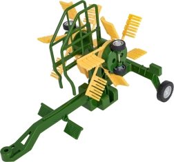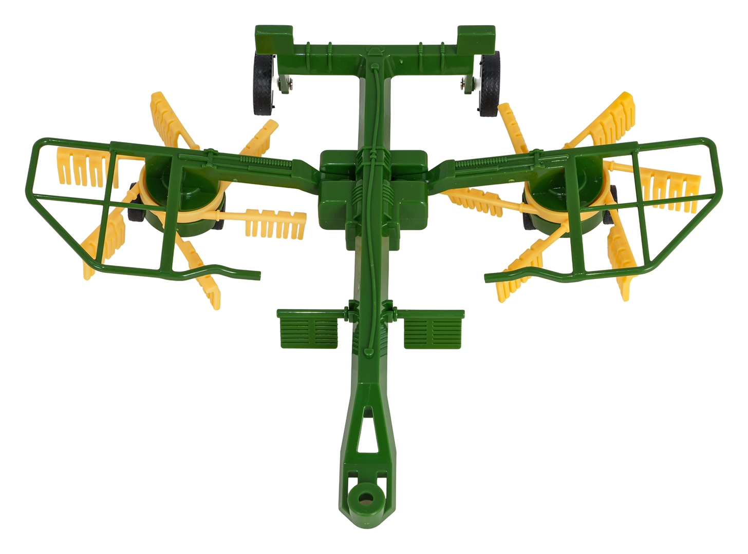 The rake can be easily detached, folded to the side, and its rotors can be turned by hand. Ideal for practicing farm work and creative play scenarios.