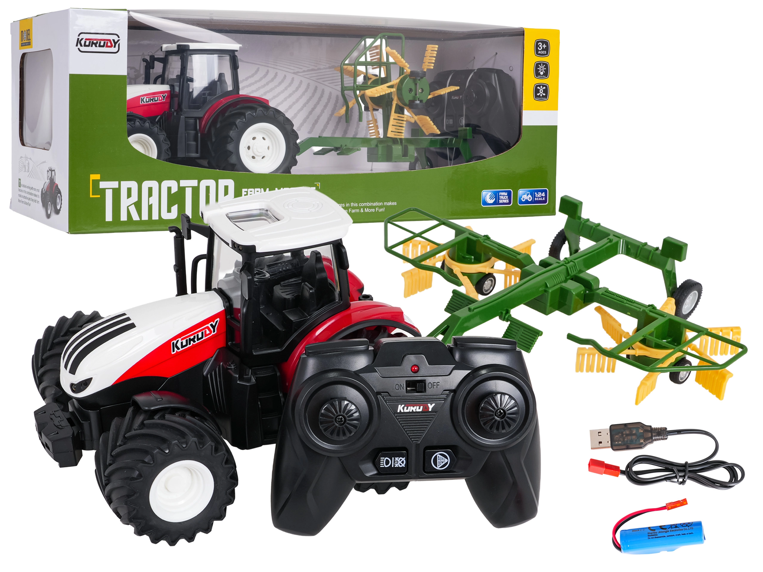 Kids' RC Tractor with Hay Rake 1:24 – Red