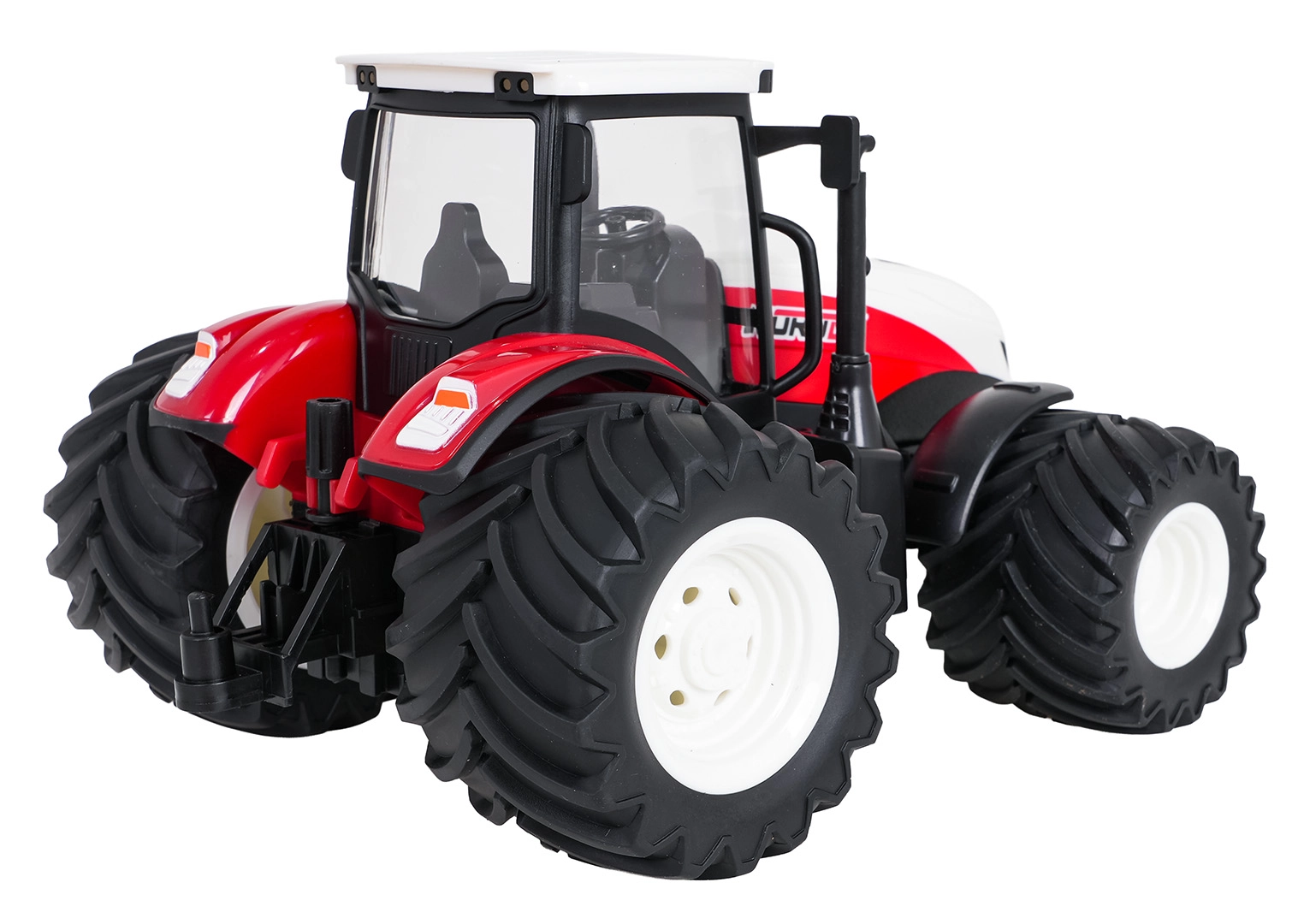 Discover realistic farm fun with this remote-controlled tractor in 1:24 scale. Thanks to stable rubber tires, steering angle control, and bright LED cabin and front lights, the tractor handles smooth driving on various surfaces. Reliable 2.4 GHz control ensures convenient steering without interference, and you can also activate the demo mode to showcase all the model’s movements.