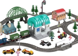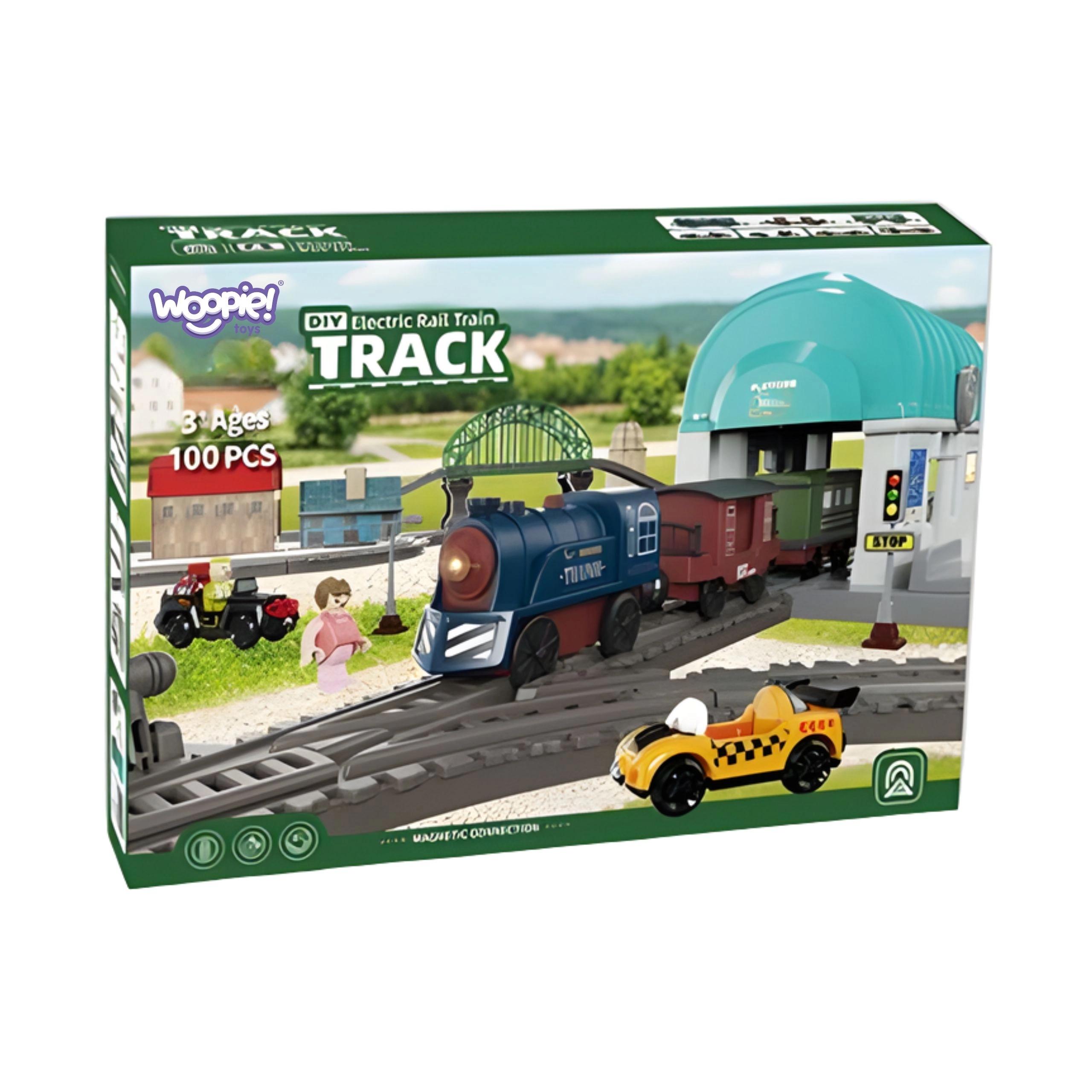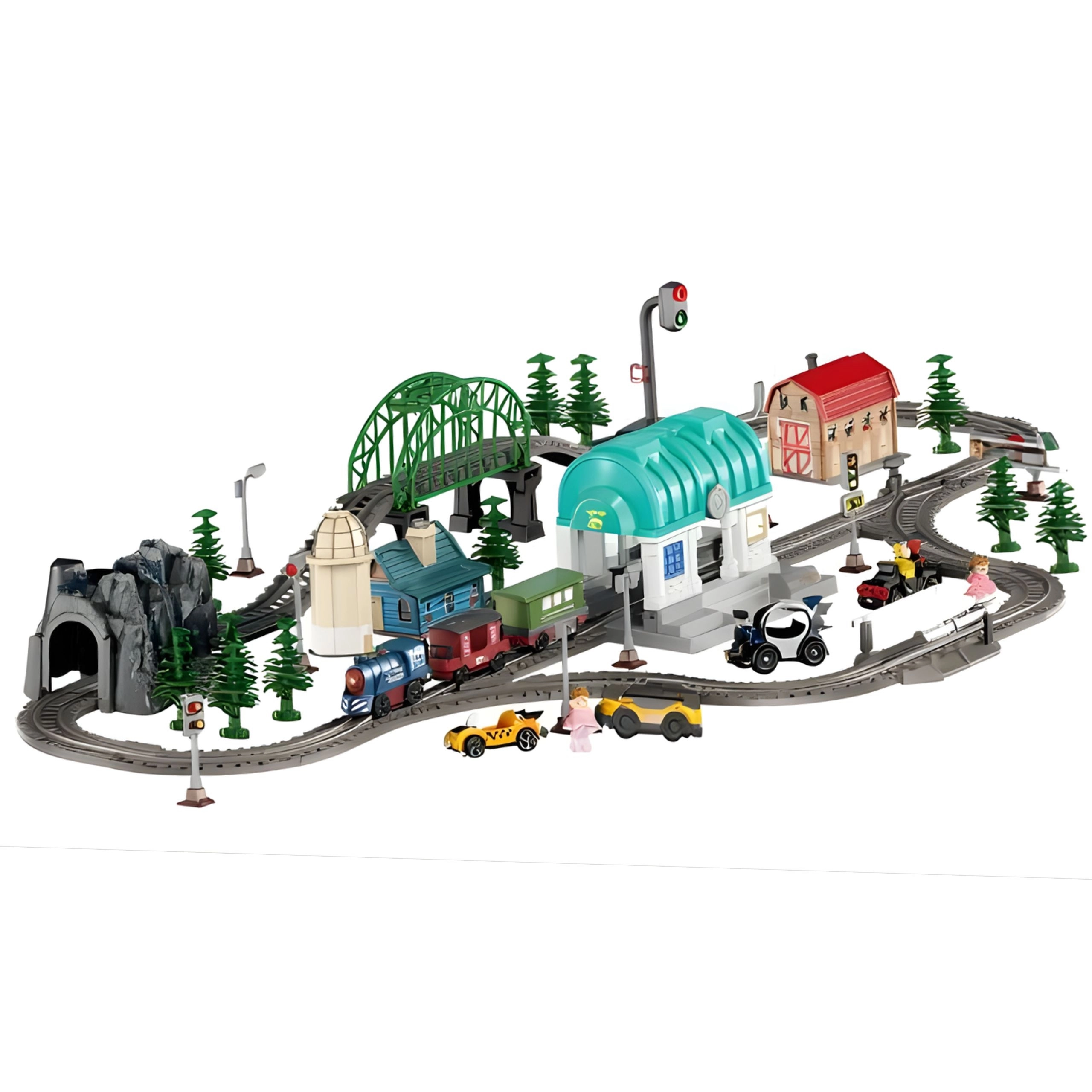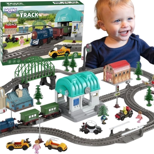 The extensive electric train set from WOOPIE brings kids a world of imagination in the form of a little town with a bridge, tunnel, and station. A locomotive with lights and sounds, magnetic car coupling, and 108 pieces for building diverse tracks ensure hours of fun and creativity. Easy assembly, safe materials, and battery operation will please both kids and parents.