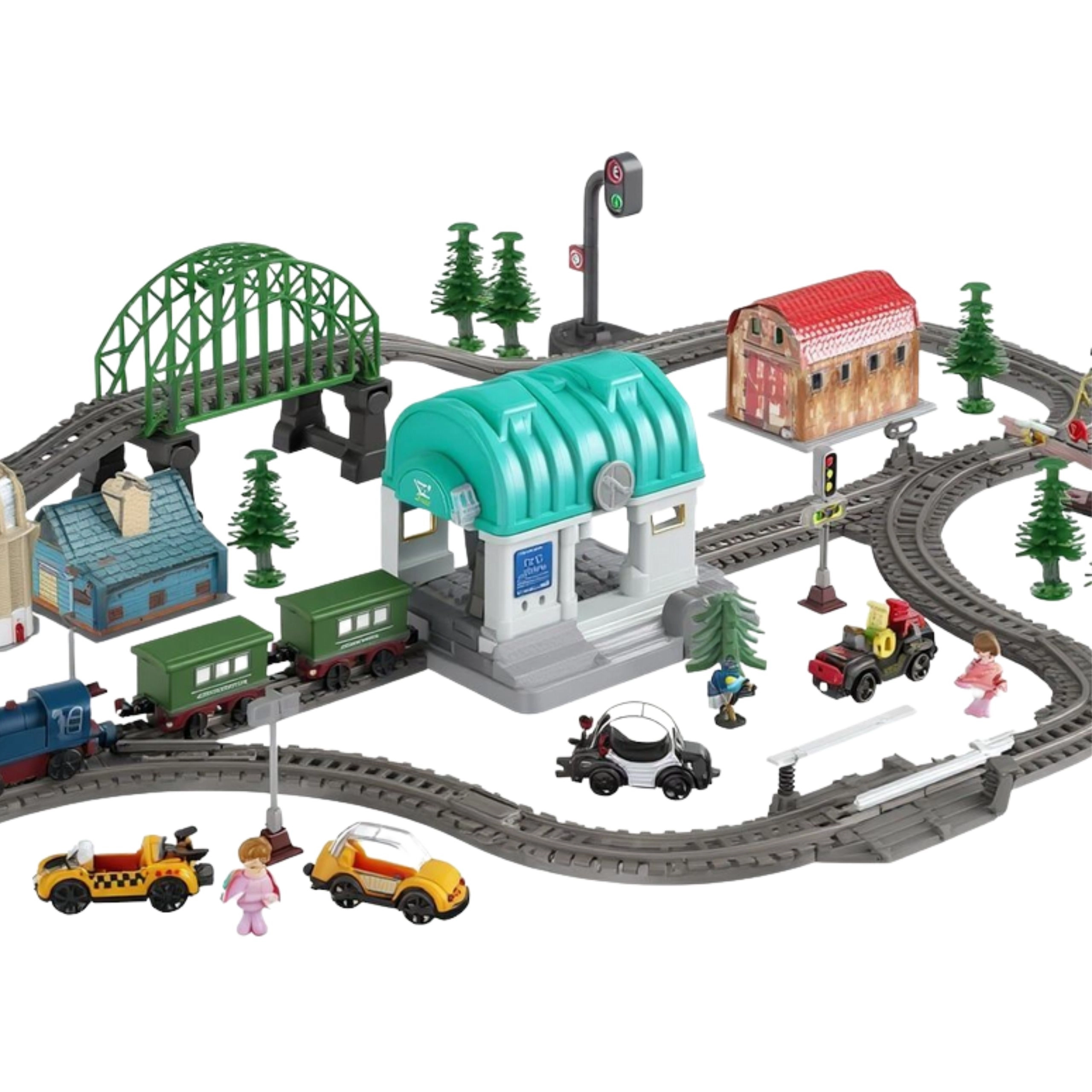 • 108 pieces including tracks, bridge, tunnel, station, cars, figures, and accessories