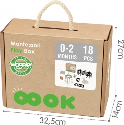 Discover the 7-in-1 educational box for the tiniest ones aged 0–2 months by WOOPIE GREEN. This carefully curated set of high-contrast and sensory toys in the spirit of Montessori supports vision, hearing, and touch, develops hand–eye coordination, and brings calm during the first days of discovery. Includes a parent guide—when and how to use each item. An ideal gift for newborns and new parents.