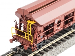 A modern self-discharging wagon for transporting food-grade bulk materials in H0 scale, faithfully depicting ČD cars from era VI. It offers highly detailed execution with separately applied ladders and handrails, excellent running characteristics, and a robust construction. Ideal for modern layouts and demanding modelers.