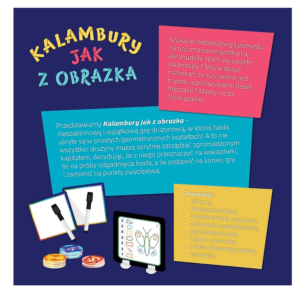 Discover an original team game where the clues are hidden in simple shapes. Using geometric tiles, you create pictures and lead your team to the solution. Creativity, strategy, and fun for the whole family – that’s Charades: Like from a Picture by Trefl.