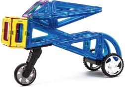 The add-on motorcycle wheel for MAGFORMERS expands the range of wheels for creating original models. The piece is designed for quick and easy snap-in to a MAGFORMERS square, so kids can immediately build new variants of single-track vehicles and trikes.