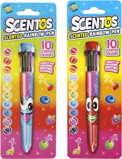 Enjoy writing and drawing with the scented multicolor SCENTOS pen, offering up to 10 colors in one, each with a fruity scent. Thanks to easy color switching, you can create unique rainbow notes. The non-toxic inks are safe for kids and encourage creativity and imagination.