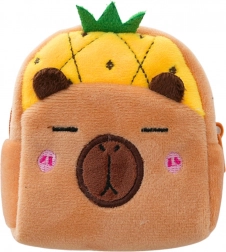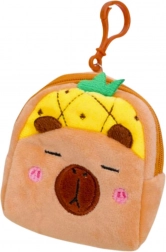 A cute plush wallet in the shape of a capybara with a yellow pineapple motif, ideal for kids and lovers of soft accessories. It is lightweight, pleasant to the touch, and thanks to its compact size of 9.5 × 8 cm it fits into a handbag, backpack, or pencil case. The zip closure keeps small items secure, and the plastic clip lets you easily attach it to keys or a bag.