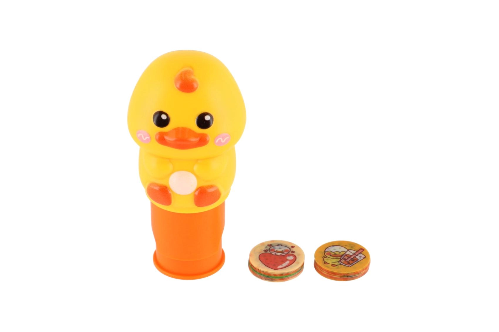 Discover a fun yellow duck-shaped stamp that turns every craft into joy. With its comfortable grip and clean imprint, it’s perfect for little hands. The package also includes round stickers with various duck motifs and a themed sheet where kids can place their stickers.