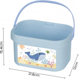 Everything stores in a durable bucket with a handle, whose lid doubles as a game board. The set supports hand–eye coordination, color and shape recognition, and creative play. A great choice for meaningful fun at home or on the go.