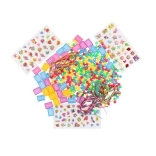 The set includes square pieces, plastic beads in various shapes and colors, stretchy bands, and foam stickers to complete a unique style. A great choice for at-home crafting, kids’ parties, and gifts.