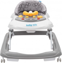 The Baby Mix walker is a great helper for first steps. Thanks to the soft, ergonomic seat, it supports proper spinal posture and ensures comfort even during longer use. The interactive panel with lights, melodies, and a steering wheel develops the senses and fine motor skills and motivates the child to move.