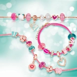 Create your own jewelry with this pink bracelet making kit, which includes everything you need: beads, charms, ready-made bracelets, and instructions. Ideal creative fun for kids aged 8 and up.