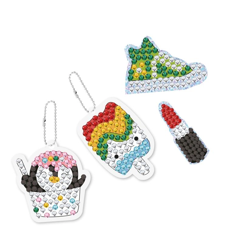 Finished charms easily clip onto zippers, keys, or backpacks, while the stickers embellish notebooks, journals, and accessories. An ideal gift for anyone who loves sparkle and crafting.