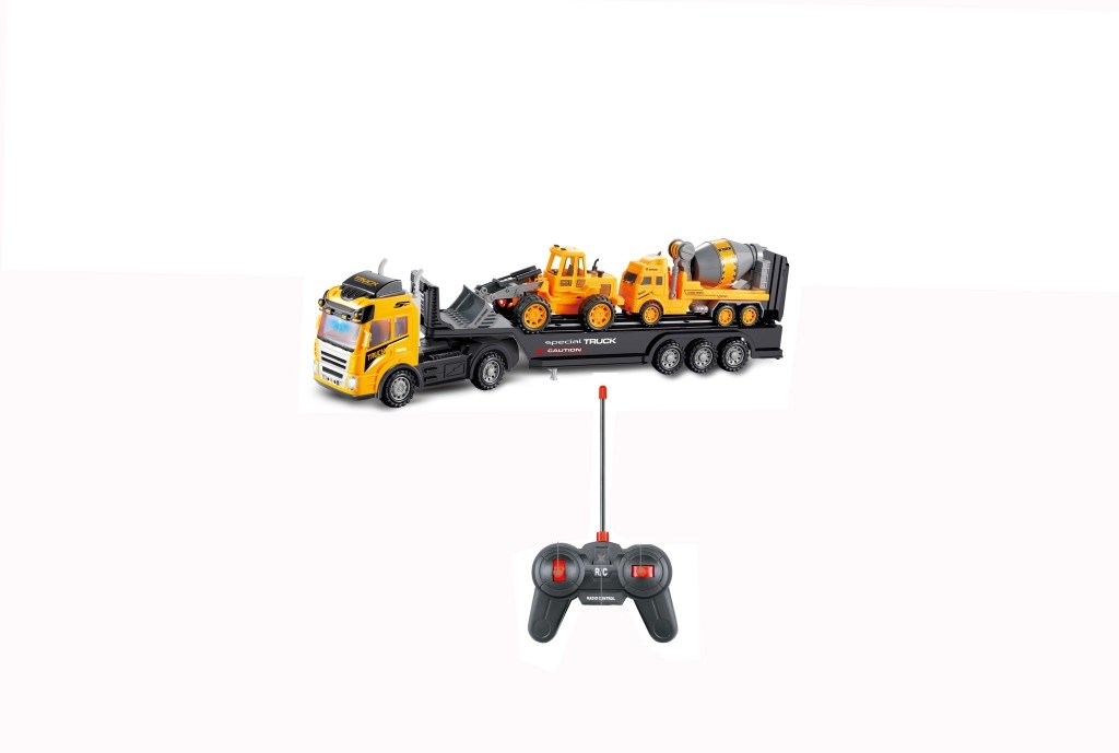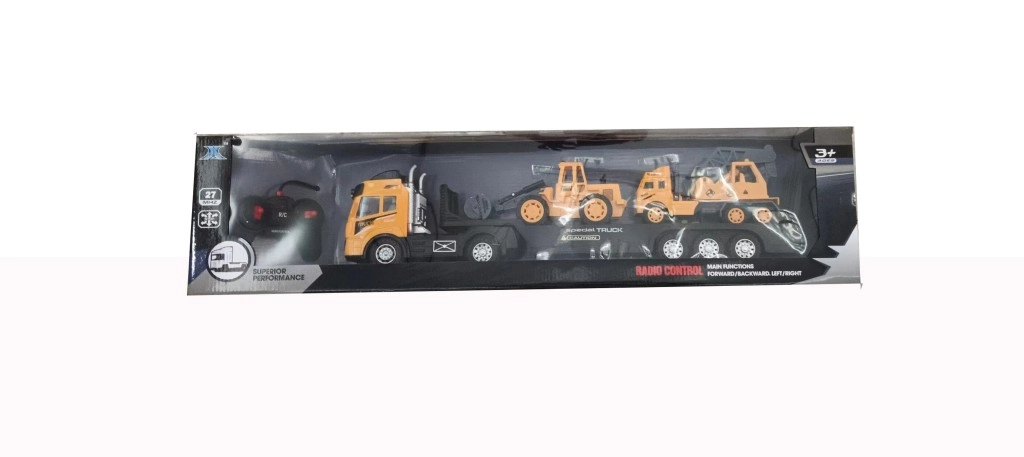 Become a truck driver and experience a great ride with lights and sounds. This RC truck is easy to control and delights with forward and reverse movement, smooth steering, and striking LED lights that turn on and flash based on movement. Realistic engine sounds enhance the authentic driving experience.